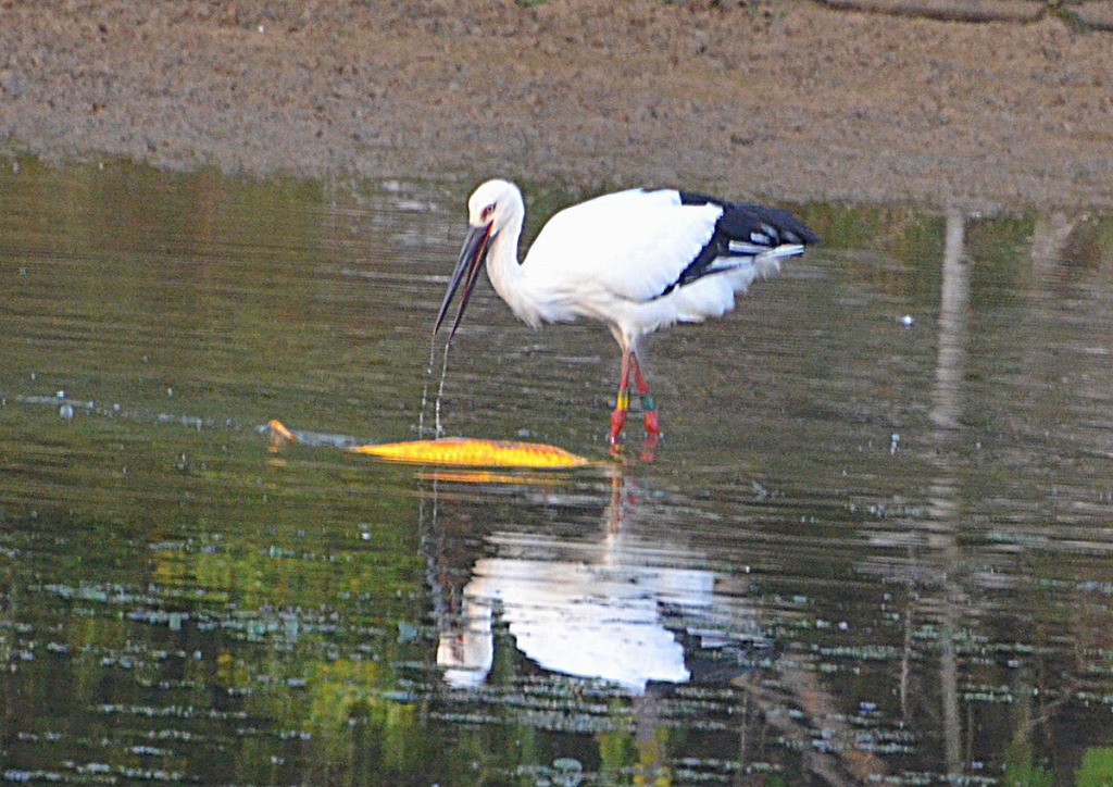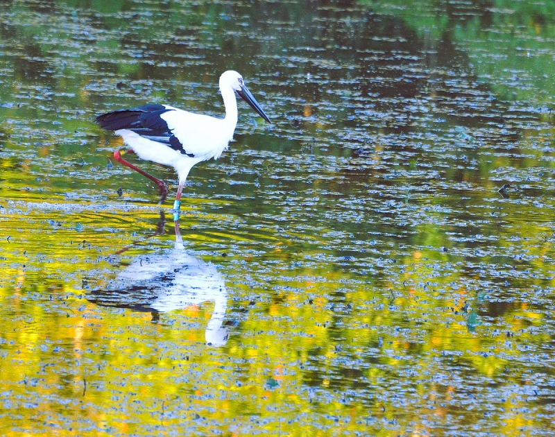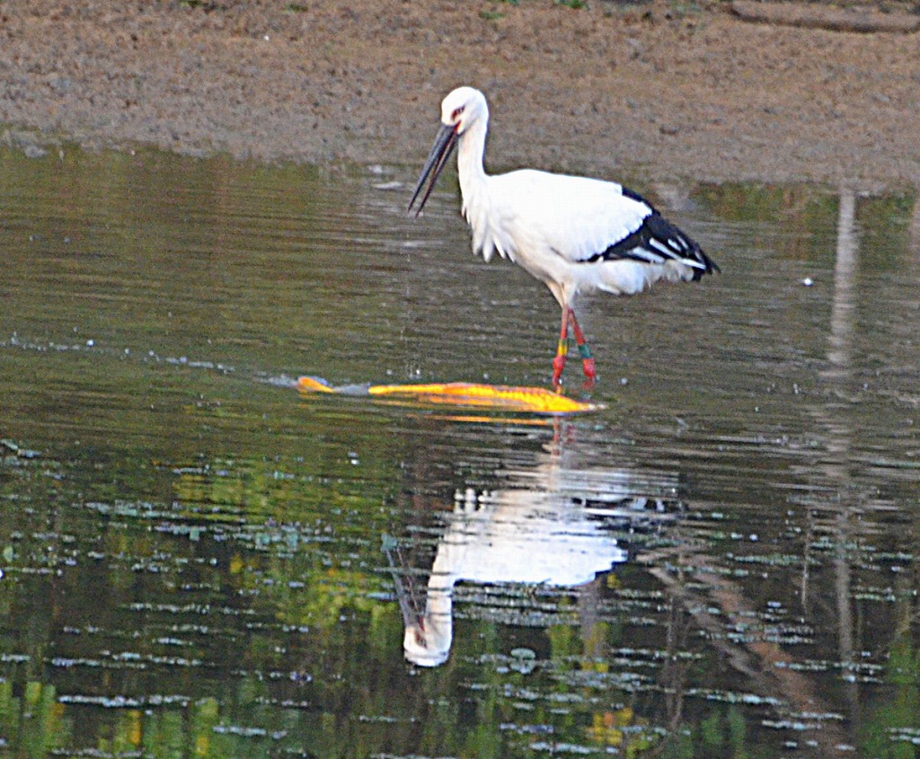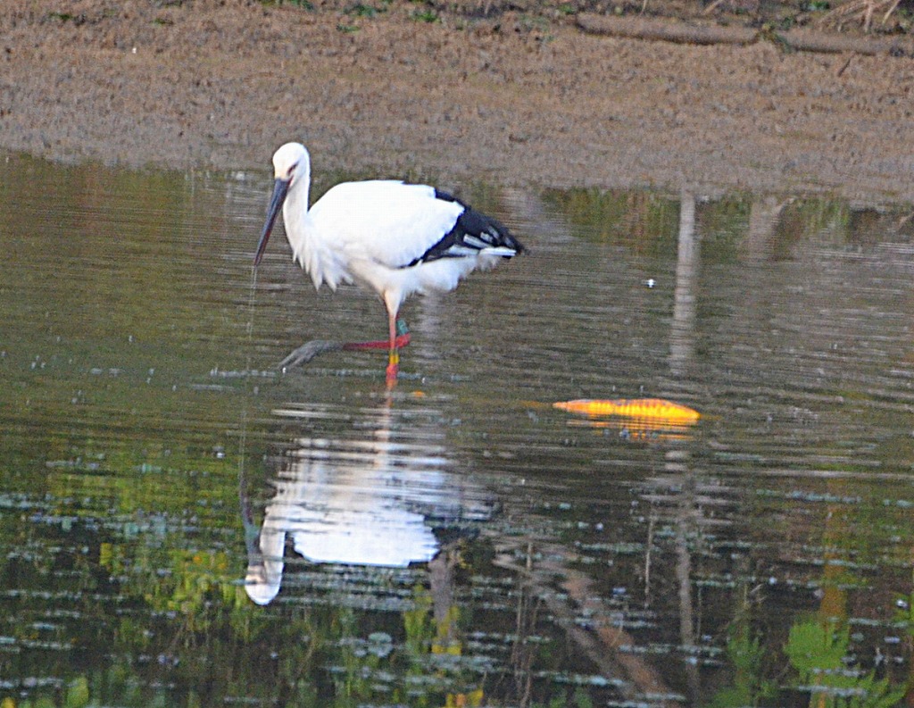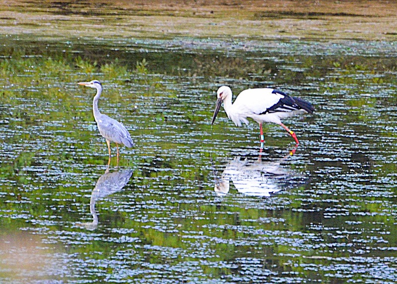 コウノトリ2羽に シラサギ3羽 ゴイサギ1羽と池はにぎやかです。
