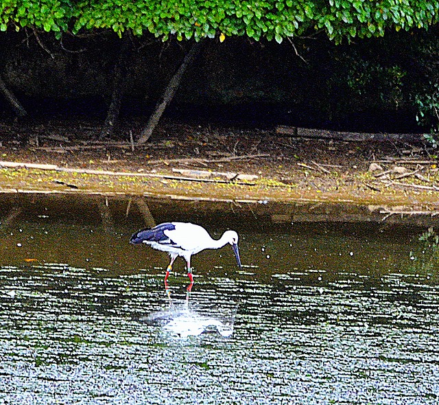 朝6時頃 近くの池でコウノトリを見かけました めだか