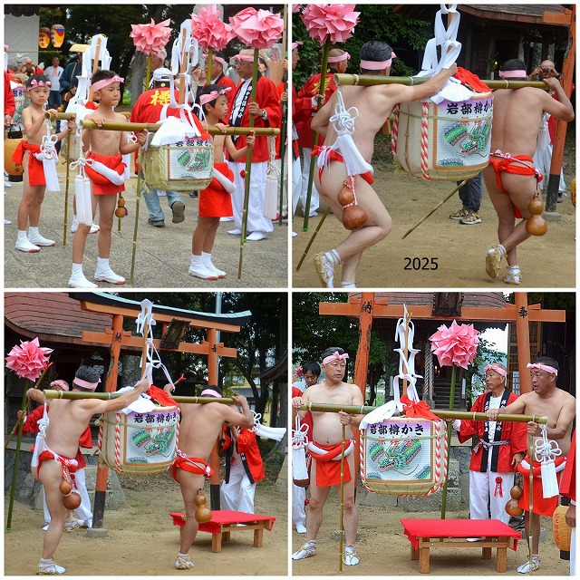 今日は岩部の祭りでした。8時30分から無形文化財の樽かきというのが行われました。11年前にも行ったのですが その頃頑張って樽をかいていた方が 車椅子にに載って見に来られていました。