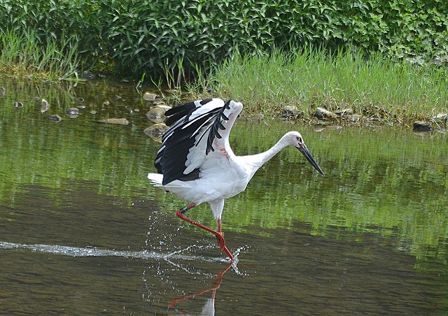 買い物帰り 夢前川の土手を走っていると シラサギ達に混じって コウノトリらしき鳥がいるのを見かけたので 車を止めて確認すると やはりそうでした。